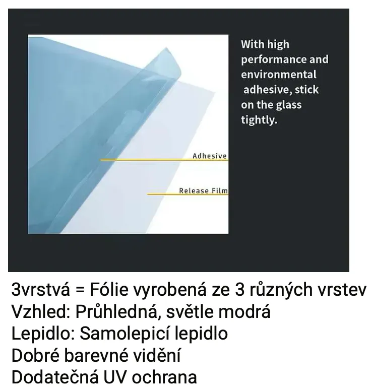 Instalace je rychlá, jednoduchá a vysoce přilnavá – probíhá obdobně jako aplikace automobilových okenních fólií a nevyžaduje speciální nástroje.