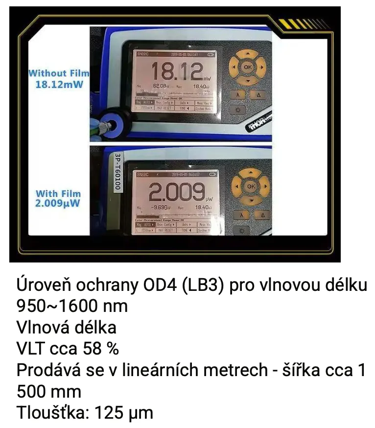Výsledkem je tenká, účinná a snadno instalovatelná laserová ochrana, která výrazně zvyšuje bezpečnost laserových pracovišť bez nutnosti výměny oken.