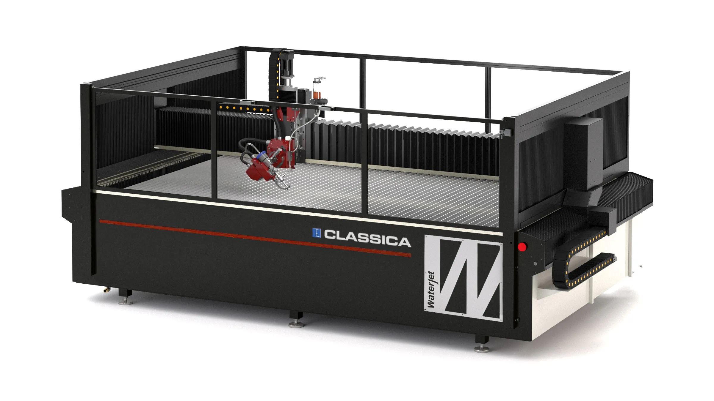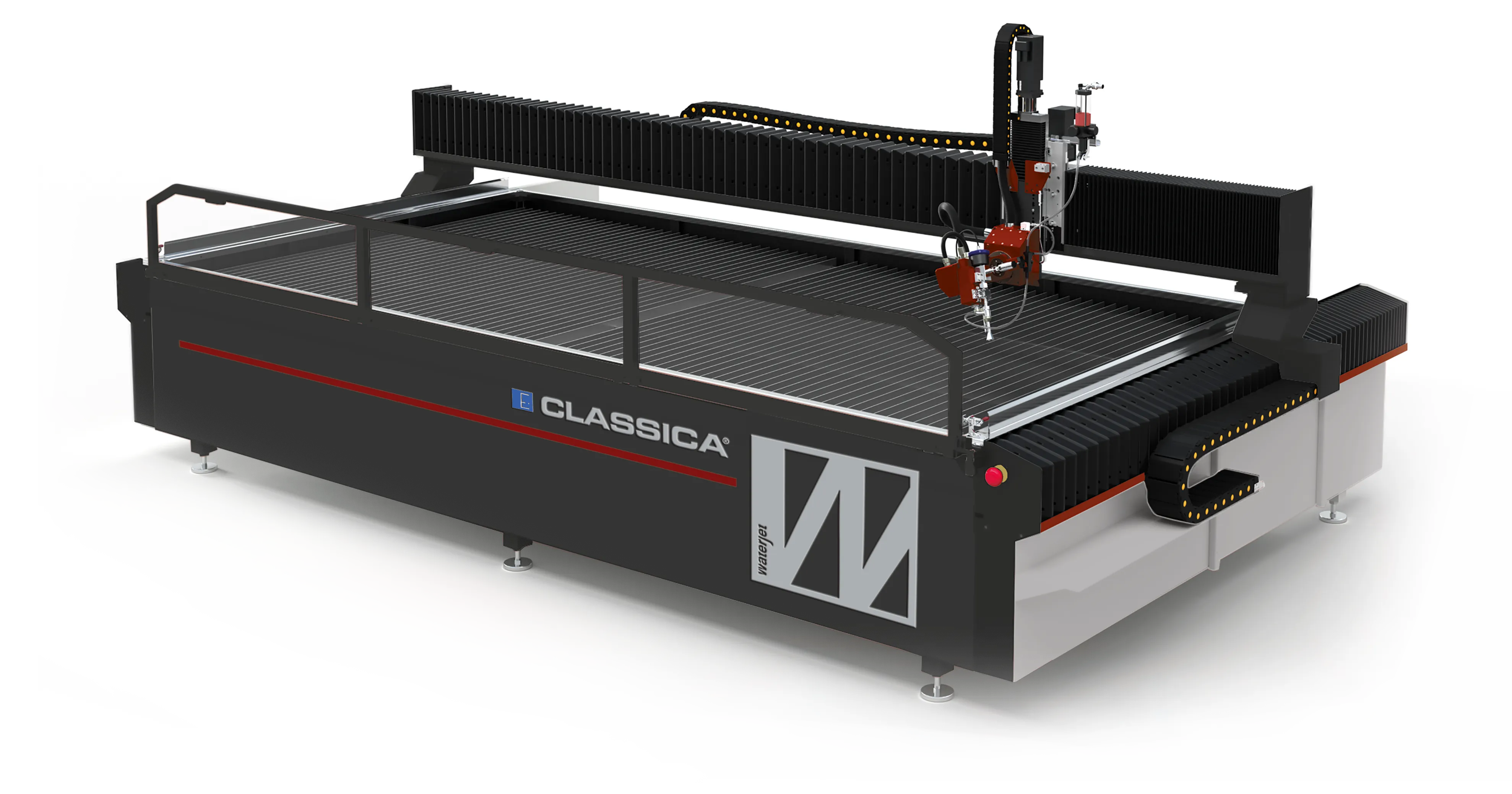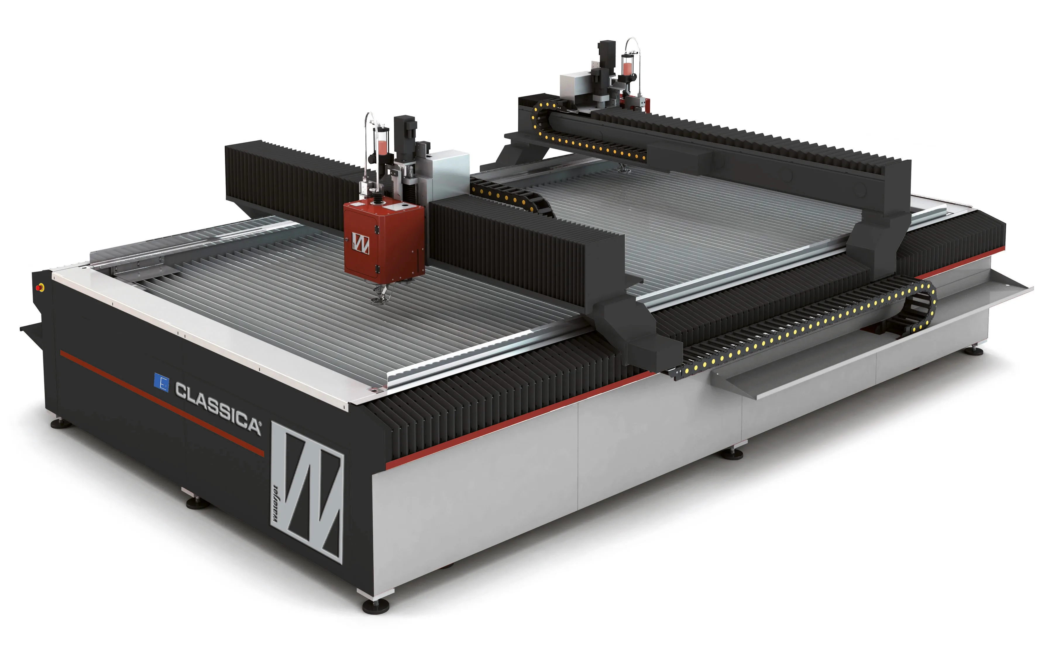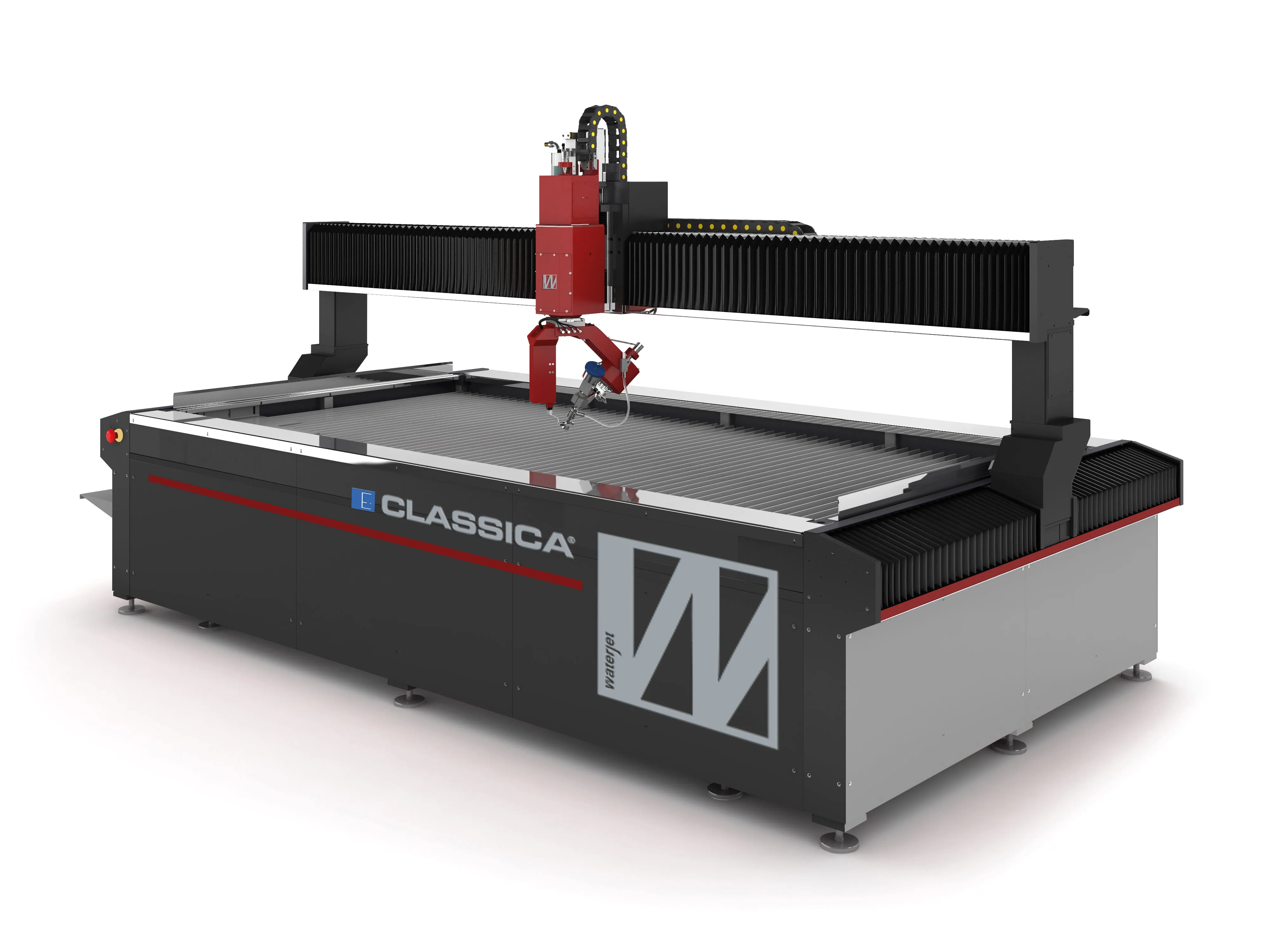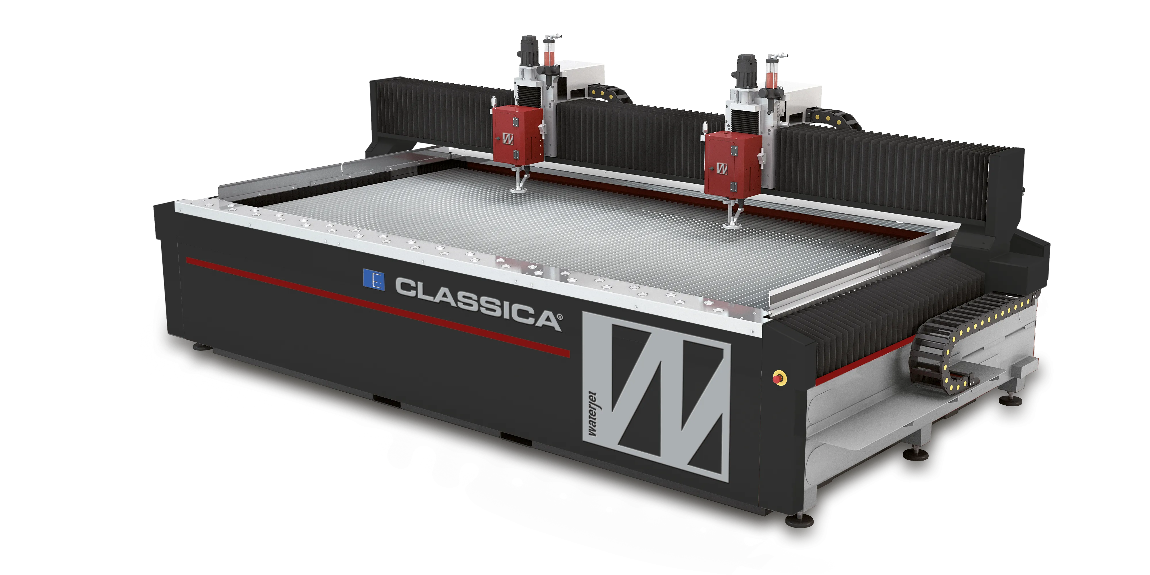 Široké spektrum portálových systémů řezání vodním paprskem, od základních NC variant až pokročilá CNC řešení. Všechny typy jsou nabízeny v 3, 4 nebo 5osém (případně Evolution 3D) provedení, s přesným a spolehlivým hřebenovým pohybovým systémem, nerezovou vodní nádrží, systémem automatického mazání a možností jednoho či dvou portálových mostů a jedné nebo více řezacích hlav.